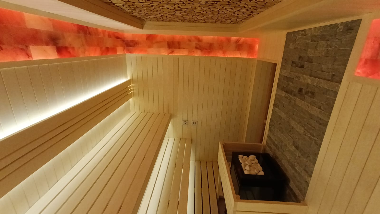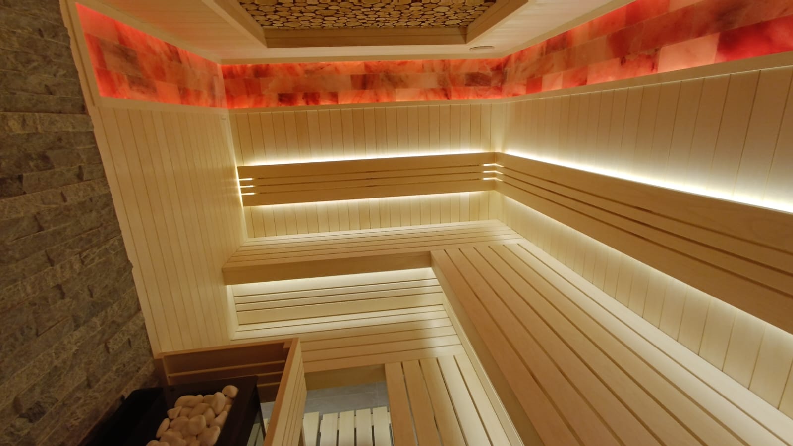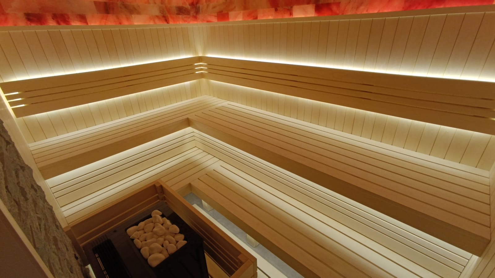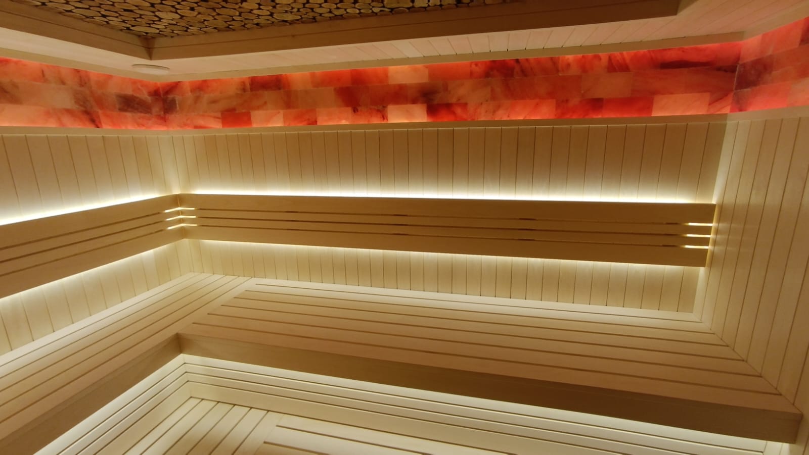 Панель из Гималайской Розовой соли по периметру потолка в 3-и ряда