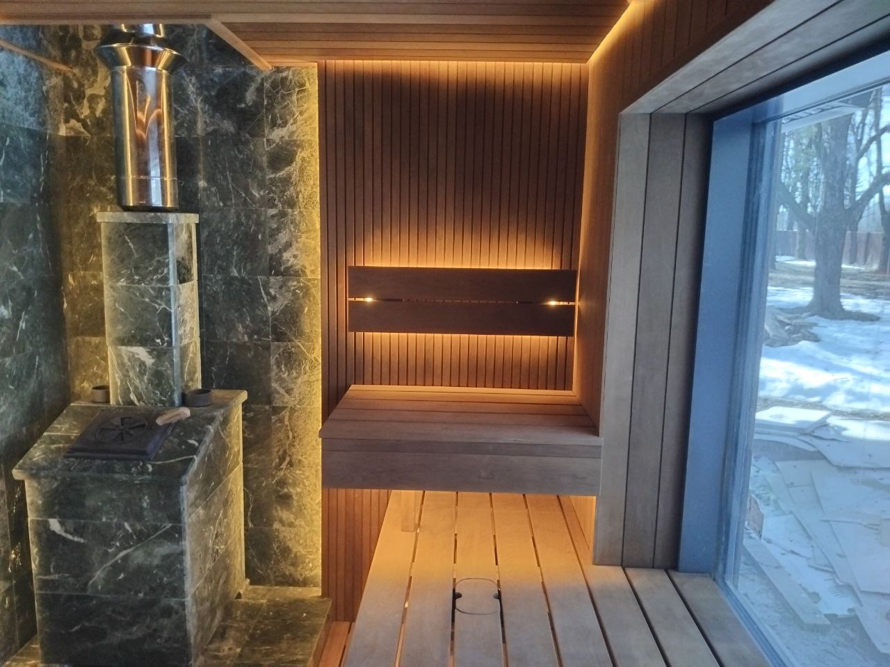 LED подсветка подспинников, полков и потолка (теплый свет)